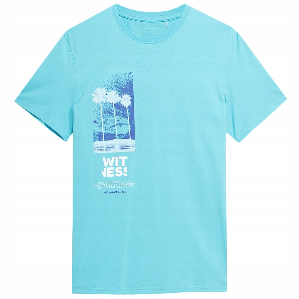 4F Koszulka Męska Bawełniana Turkusowa z Logo Klasyczna