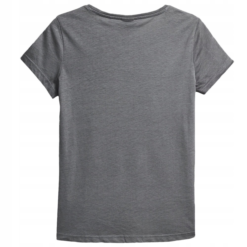 Damska koszulka w kolorze szarym z ozdobnym nadrukiem z przodu.