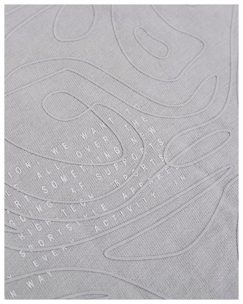 Damska koszulka w kolorze szarym z gumowanym ozdobnym nadrukiem z przodu.