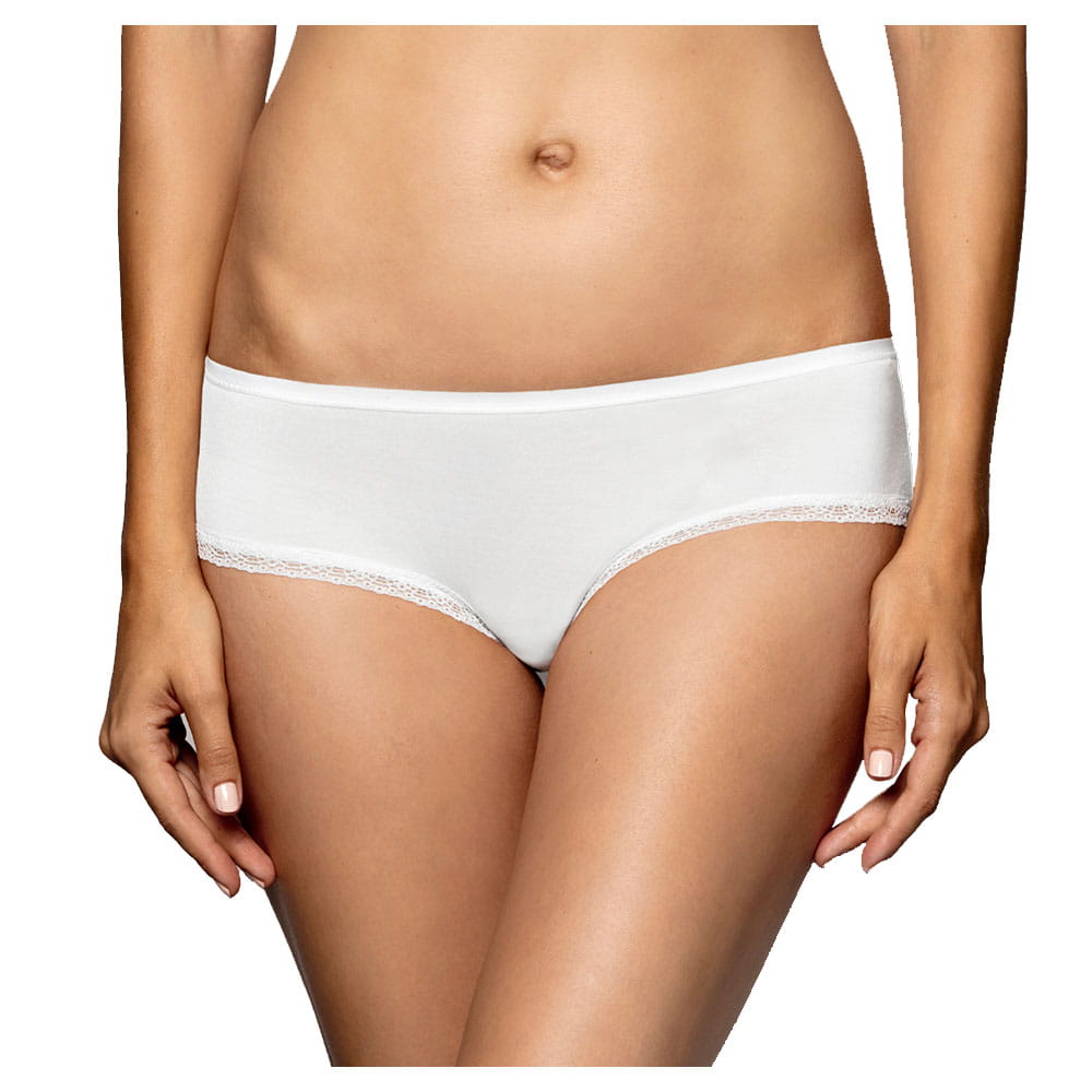 Majtki w kolorze jasnego ecru wykończone miękką koronką.