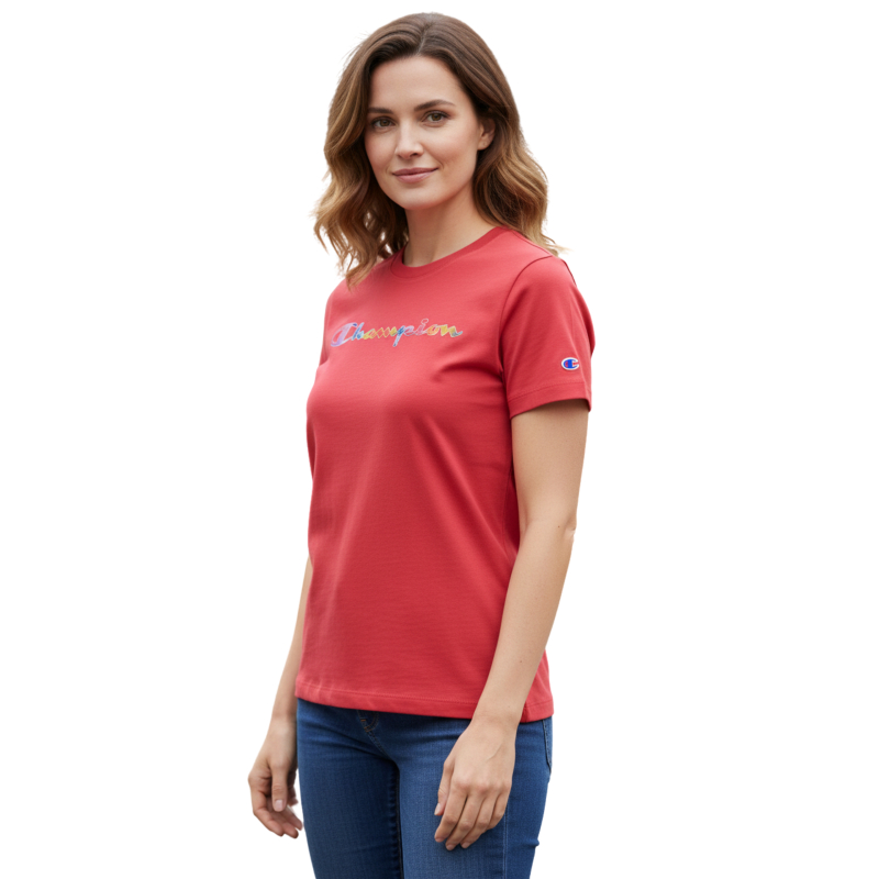 Koszulka damska Champion z kolorowym nadrukiem logo.