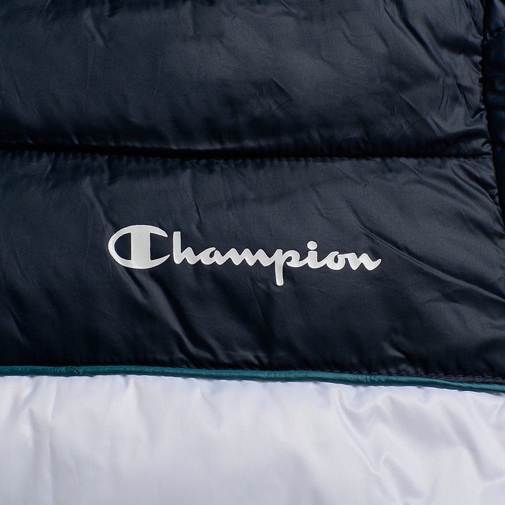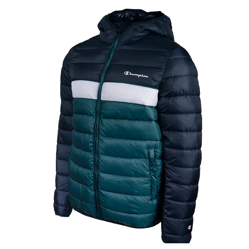 Zapinana kurtka męska marki Champion o regulowanym kapturze. Produkt jest w odcieniach granatu, zieleni oraz bieli. Funkcjonalności dodają także dwie kieszenie zapinane na zamek. Posiada także minimalistyczny detal na rękawie w postaci logo oraz napis Champion umieszczony na klatce piersiowej.