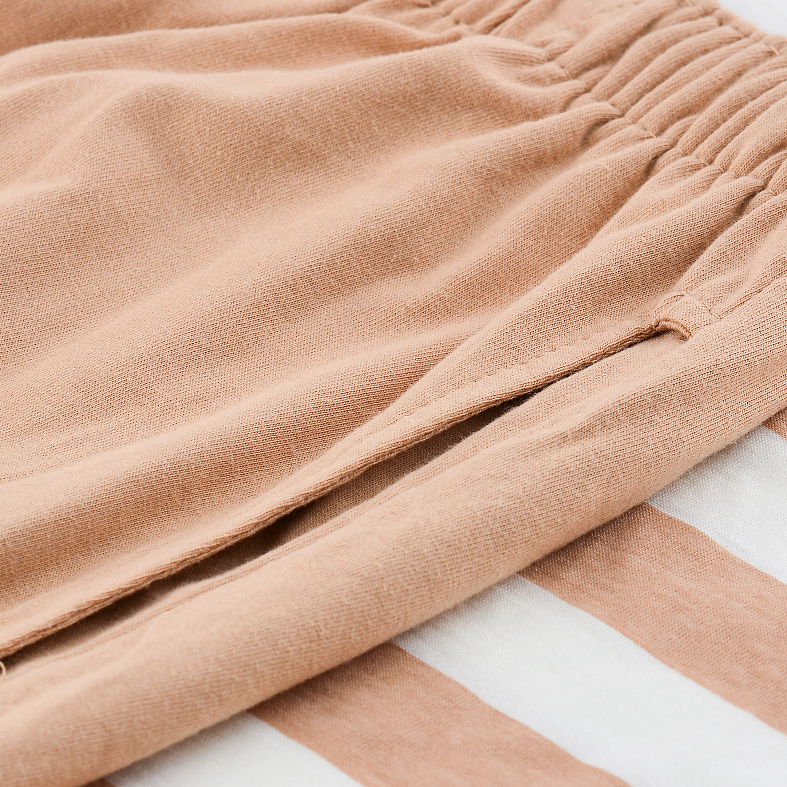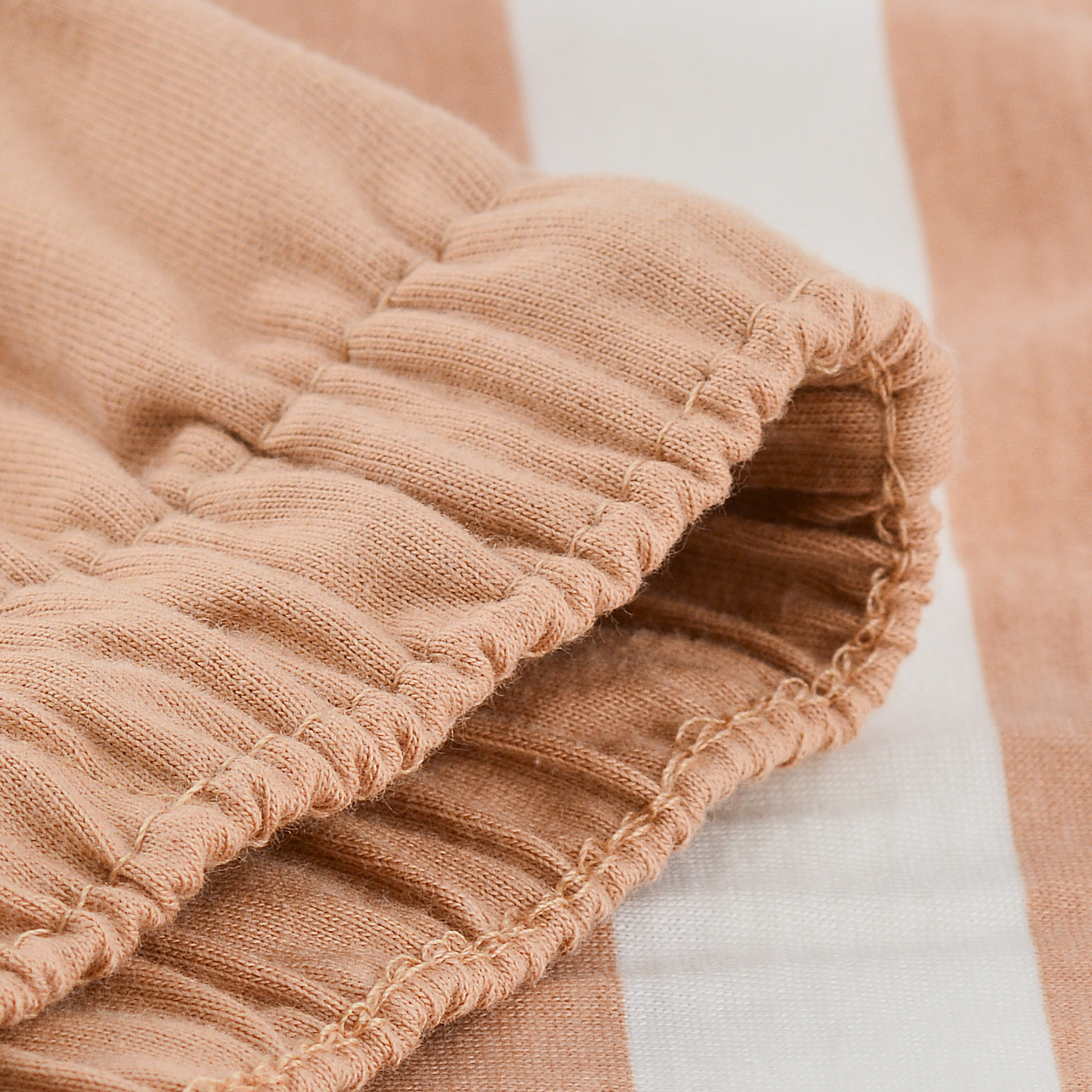 Delikatne paski w połączeniu z ciepłym beżowym kolorem sprawiają, że ten komplet łączy w sobie funkcjonalność z nowoczesnym, subtelnym designem.
