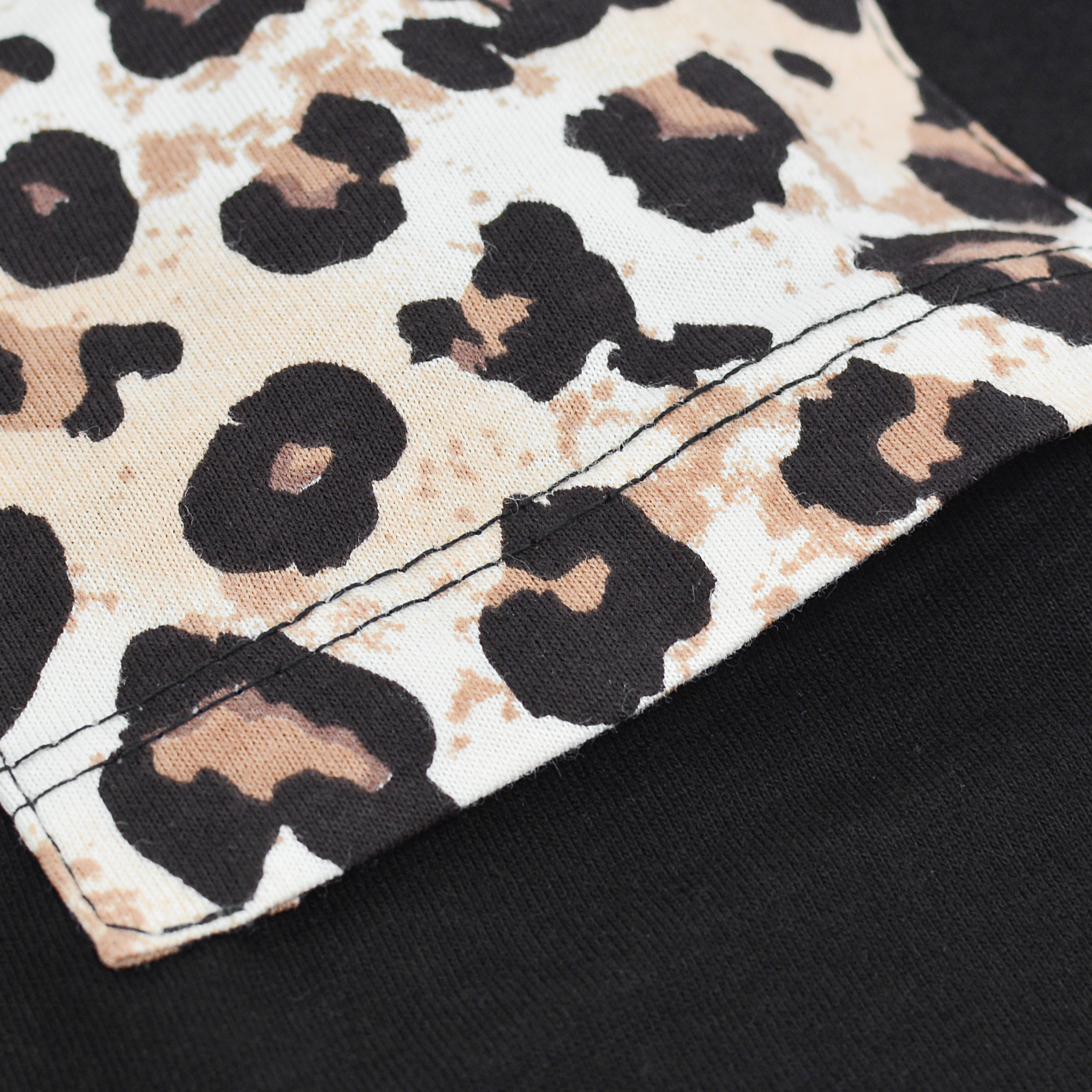 Wygodna, stylowa i praktyczna – ta piżama damska w czarno-beżowych odcieniach to idealna propozycja na każdą porę roku. Czarna koszulka z krótkim rękawem została efektownie wzbogacona o kieszonkę z motywem w panterkę, który nawiązuje do designu dolnej części kompletu. Długie spodnie w całości pokrywa modny print w panterkę, tworząc harmonijną kompozycję z górą.
