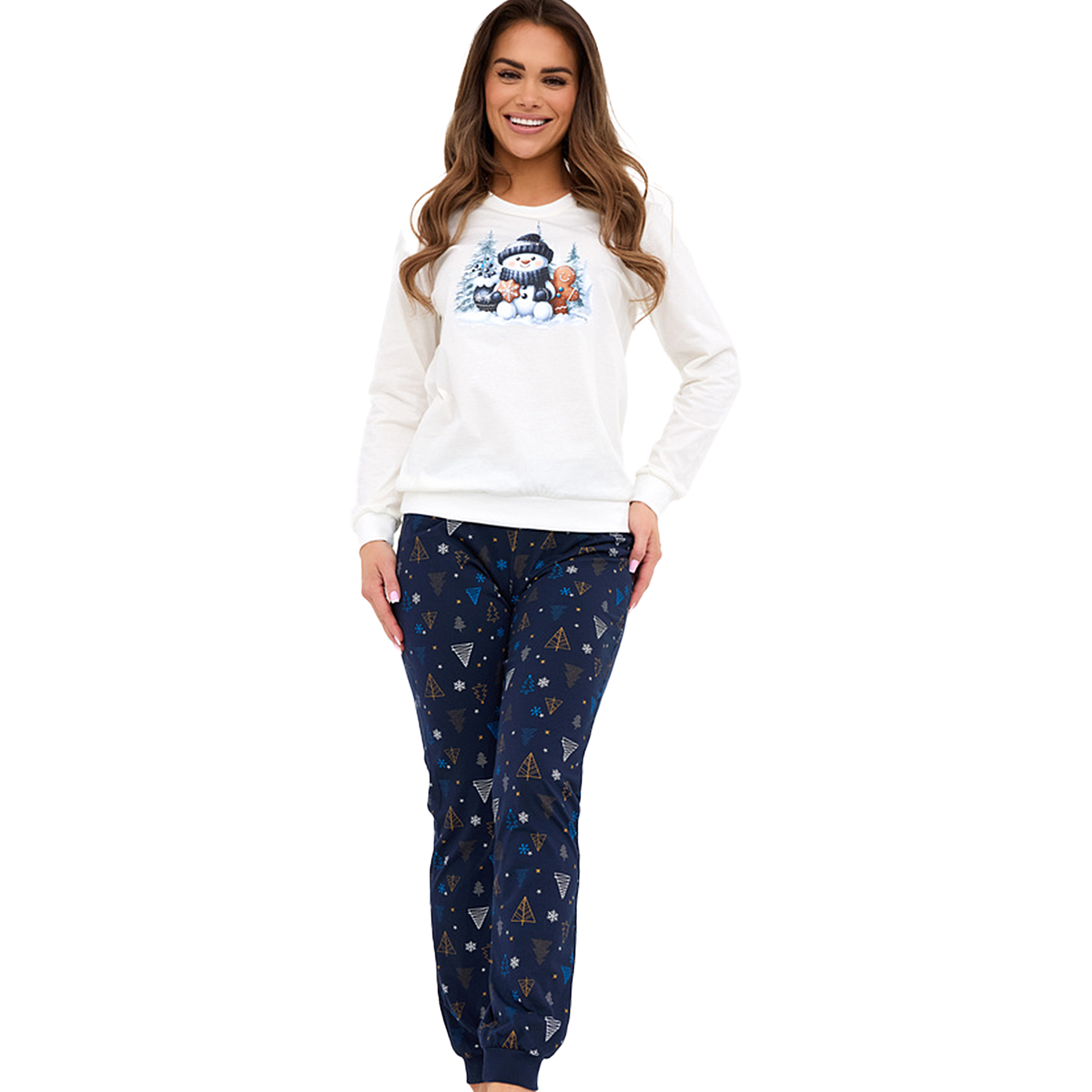 Cornette Piżama Damska Świąteczna Długi Rękaw Bałwan Zima Bawełna