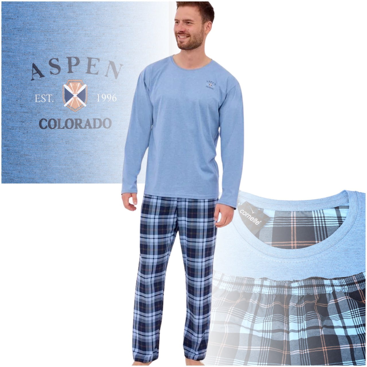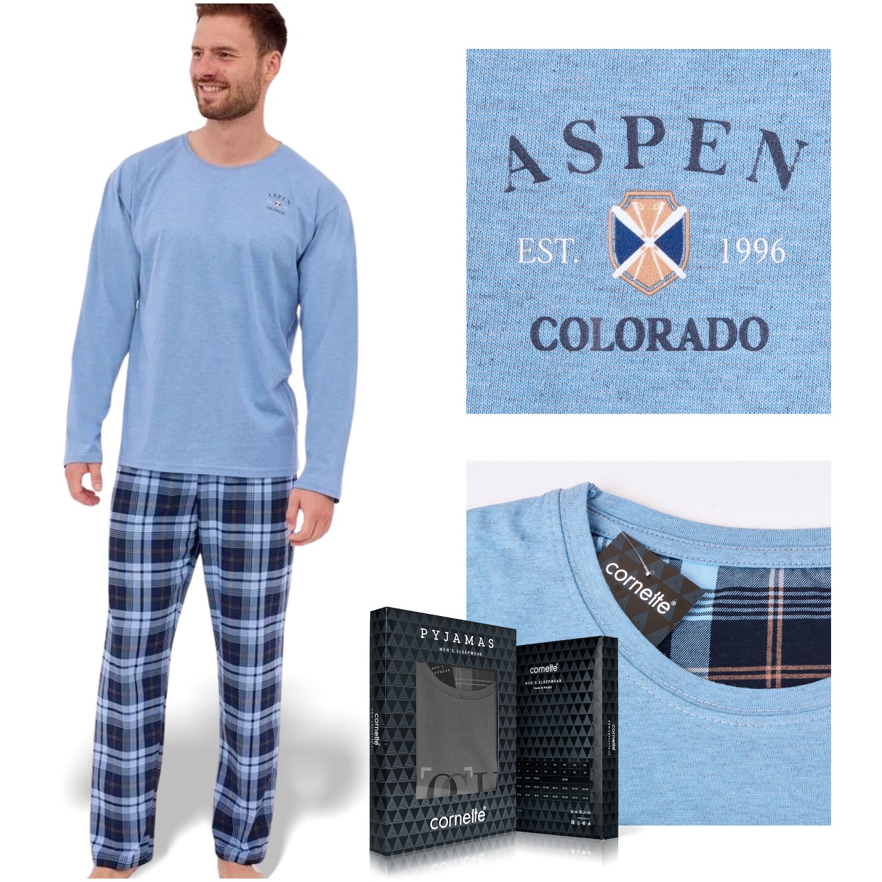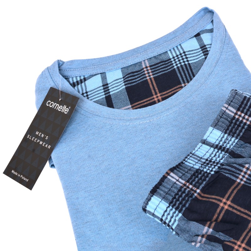 CORNETTE Piżama Męska ASPEN2 124/264 Bawełniana Błękitna Krata