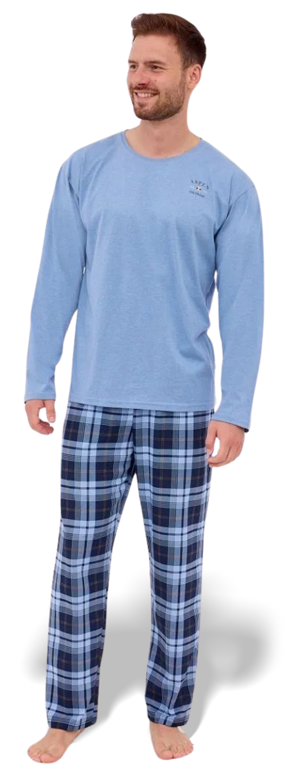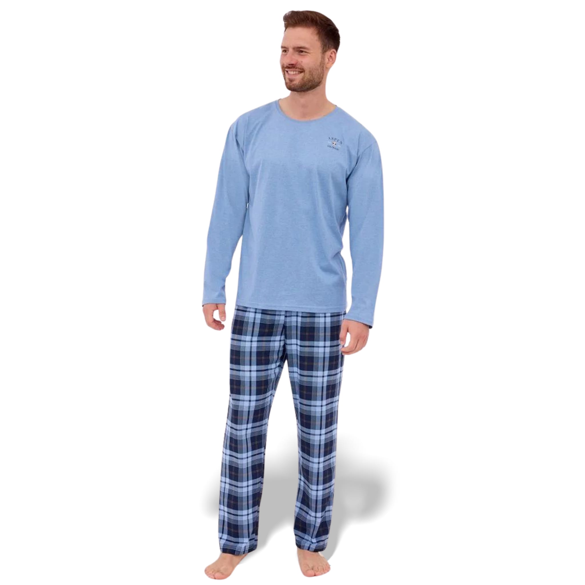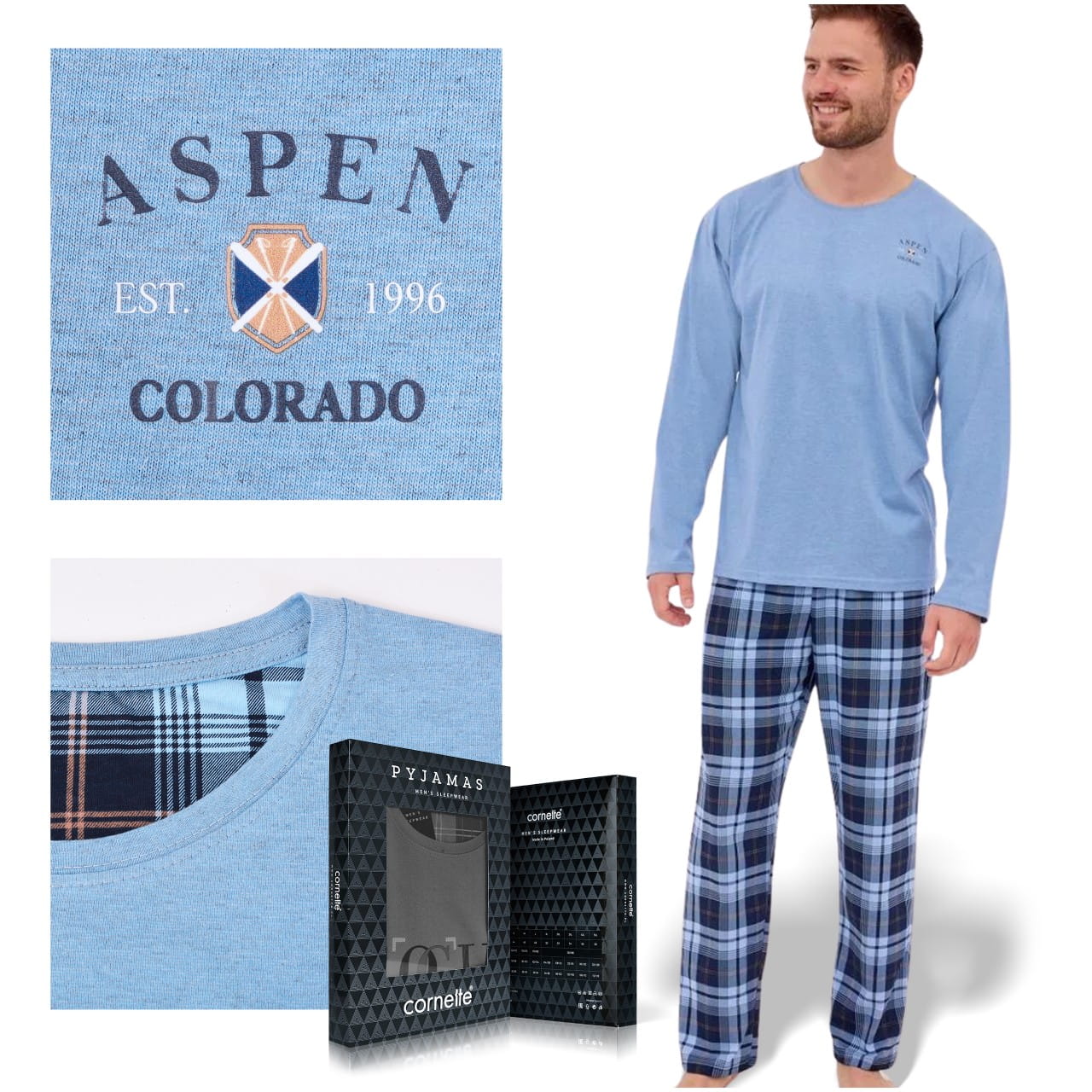 CORNETTE Piżama Męska ASPEN2 124/264 Bawełniana Błękitna Krata