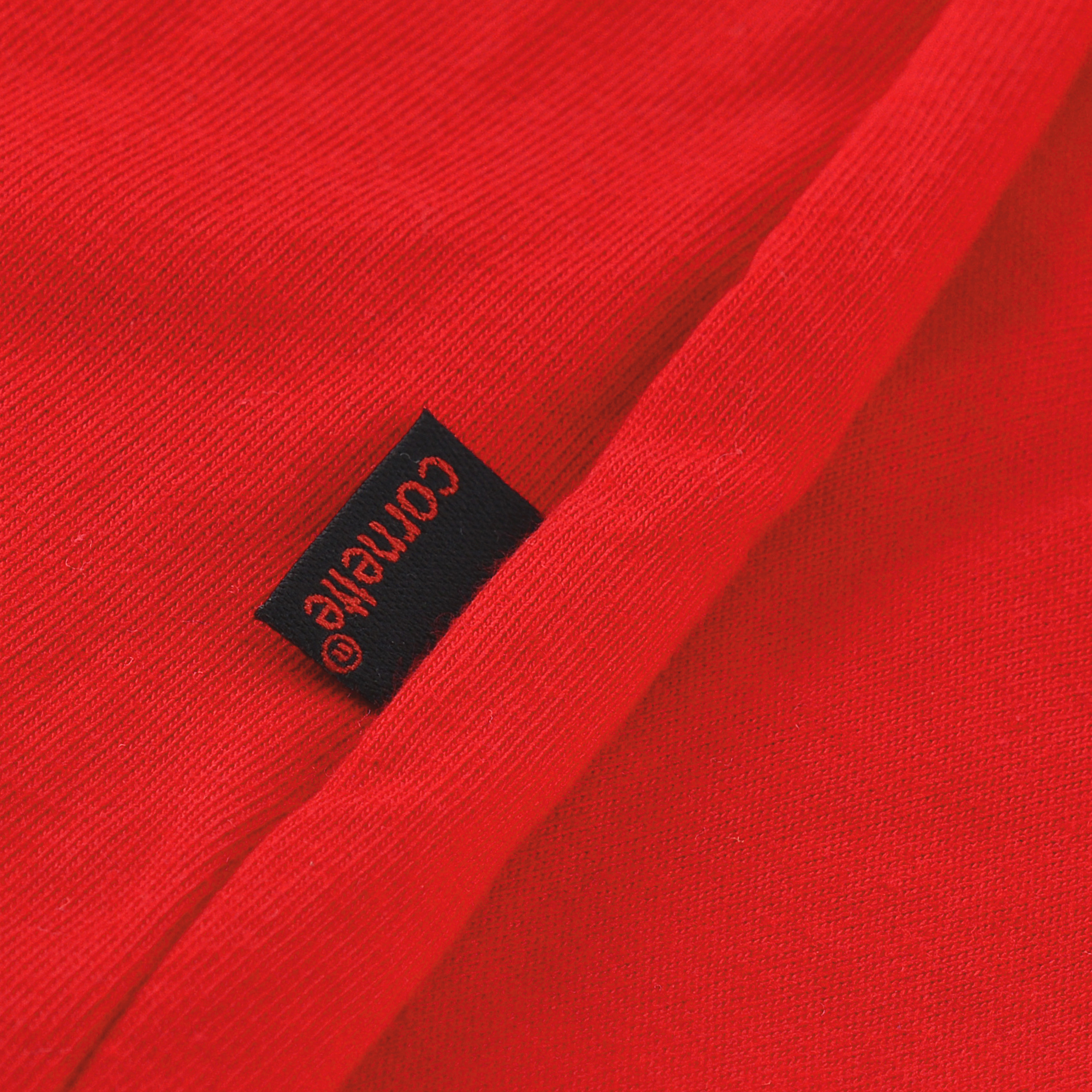 Czerwona koszulka z długim rękawem została subtelnie ozdobiona delikatnym nadrukiem, nadającym całości dyskretny, klasyczny charakter.
