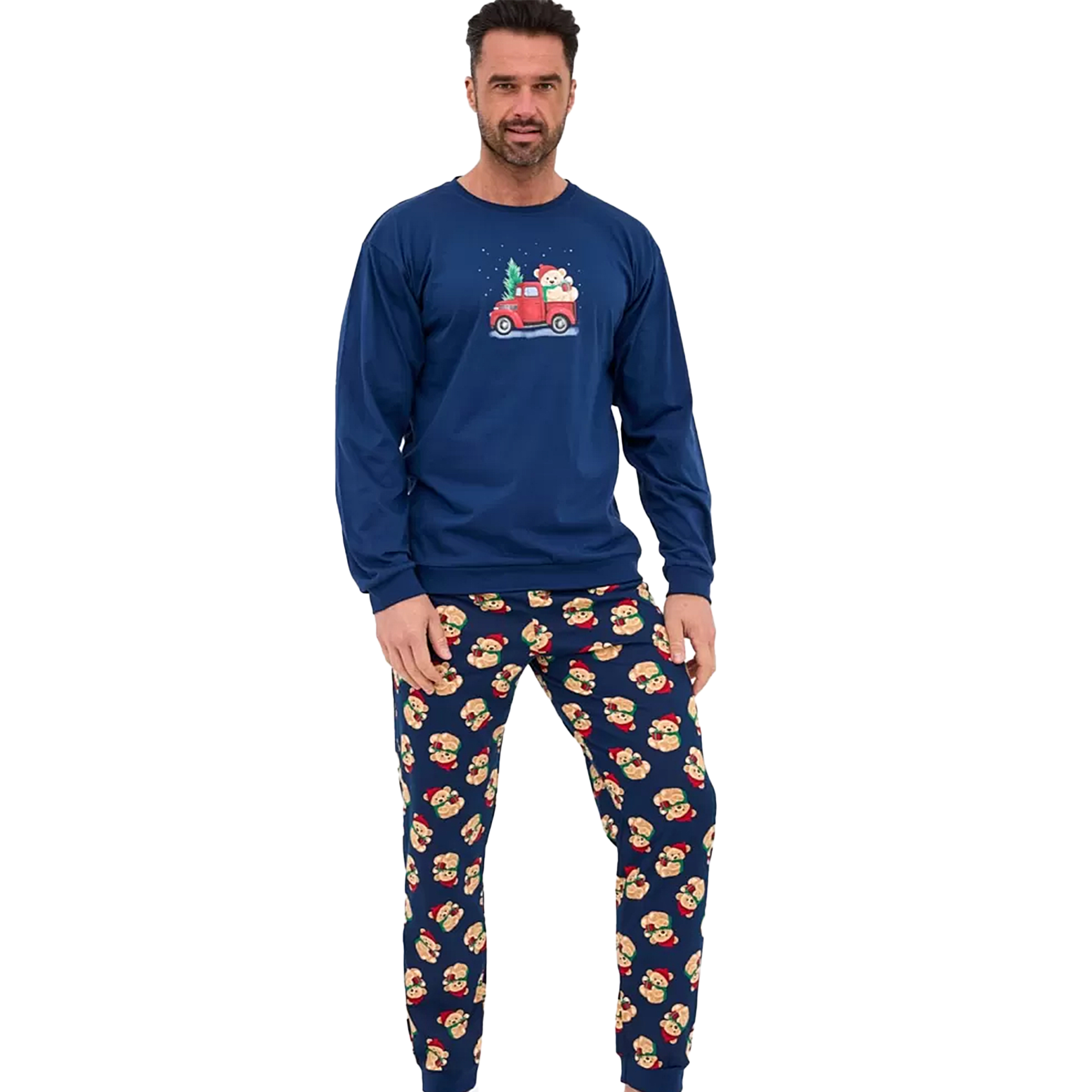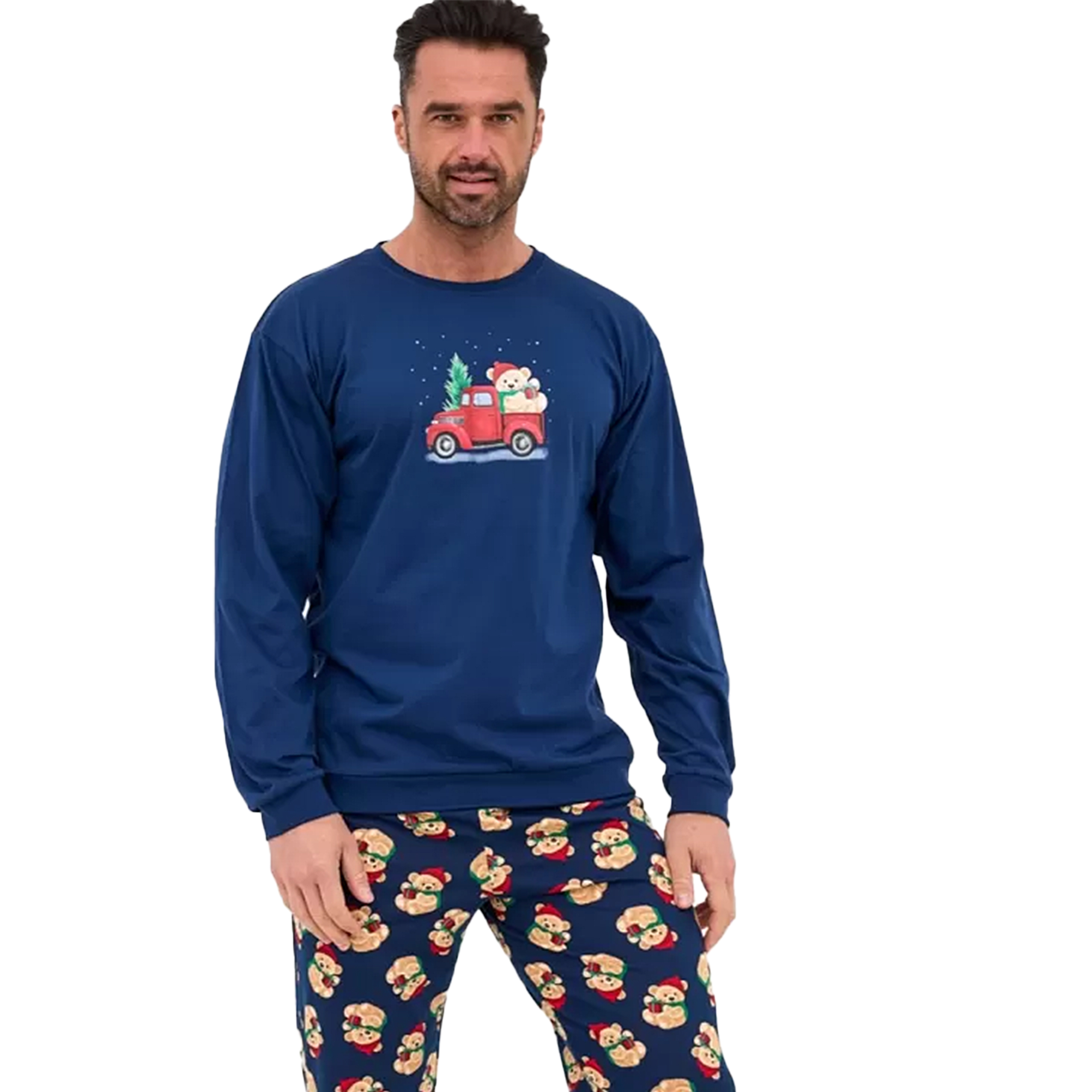 Cornette Piżama Męska Świąteczna Długi Rękaw Granatowa Misie Bawełniana