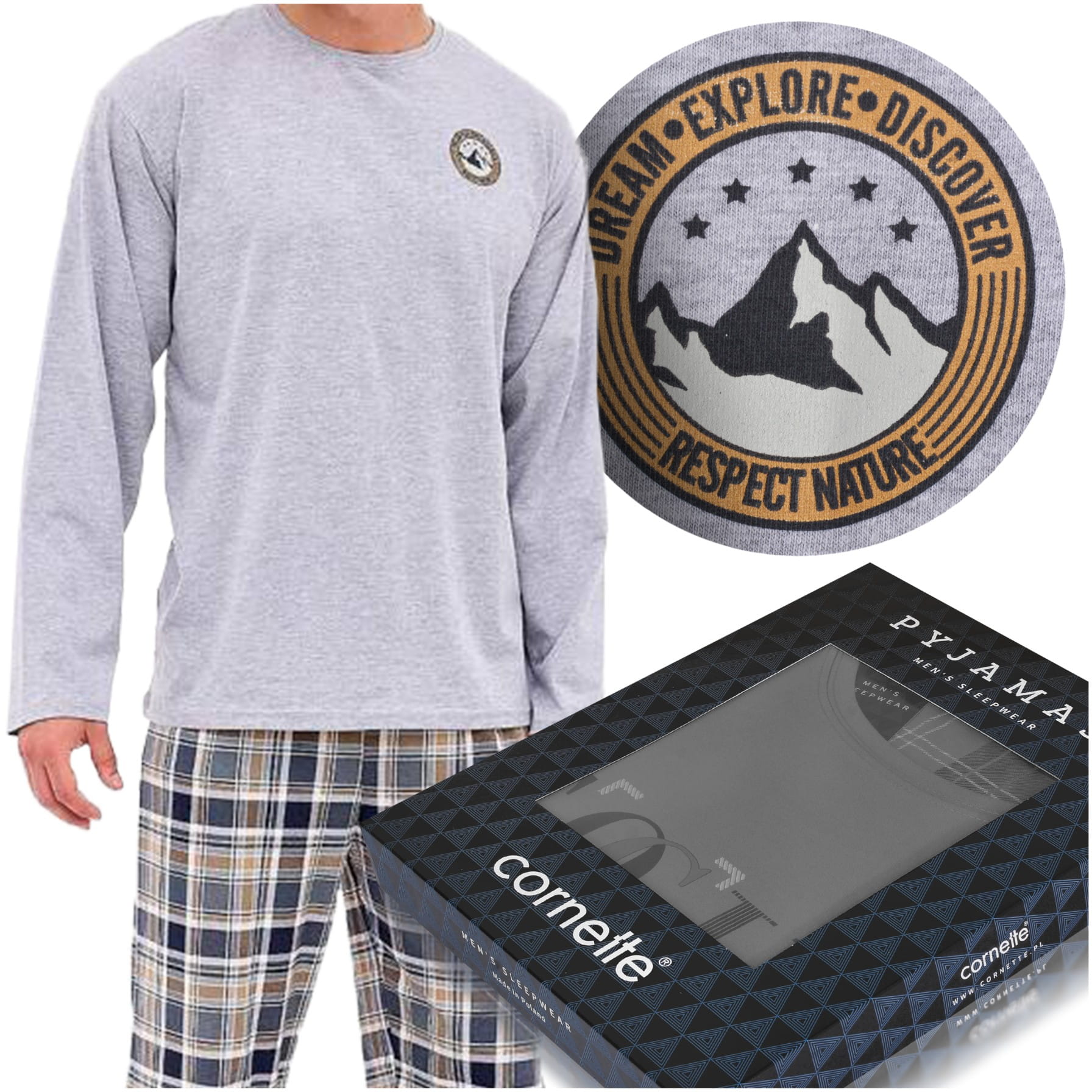 CORNETTE Piżama Męska EXPLORE Bawełniana Szara