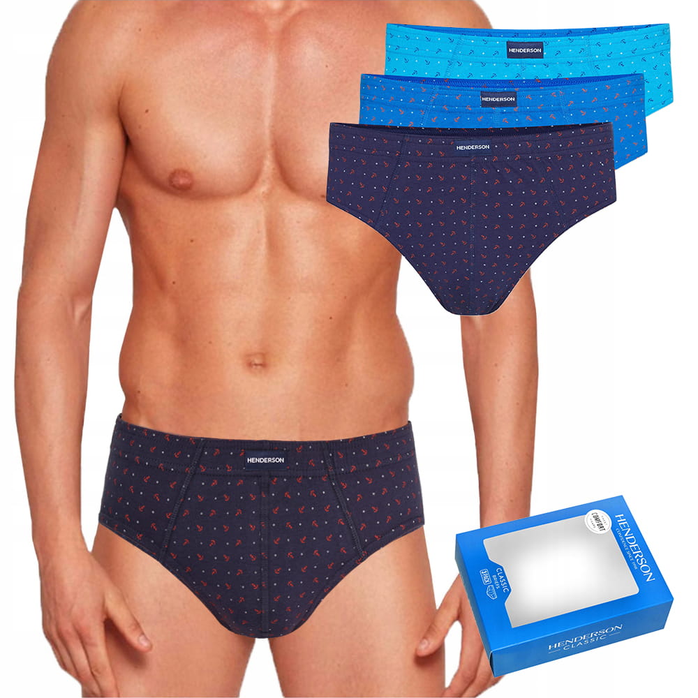 HENDERSON 3-pak Slipy Męskie 1446 K621 Niebieskie Bawełniane