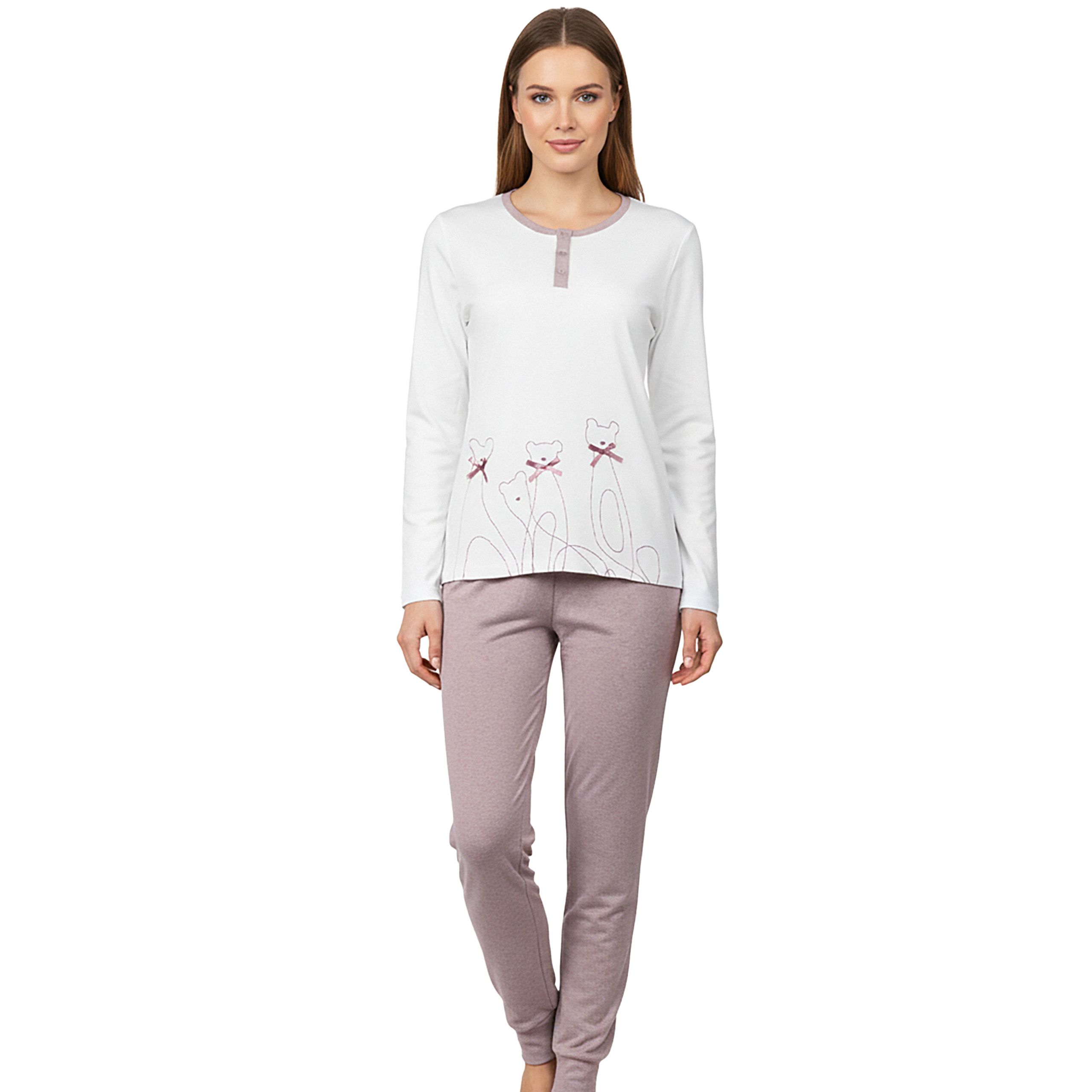 INFIORE Piżama Damska Długi Rękaw Ciepła Spodnie Bawełna Guziki Misie