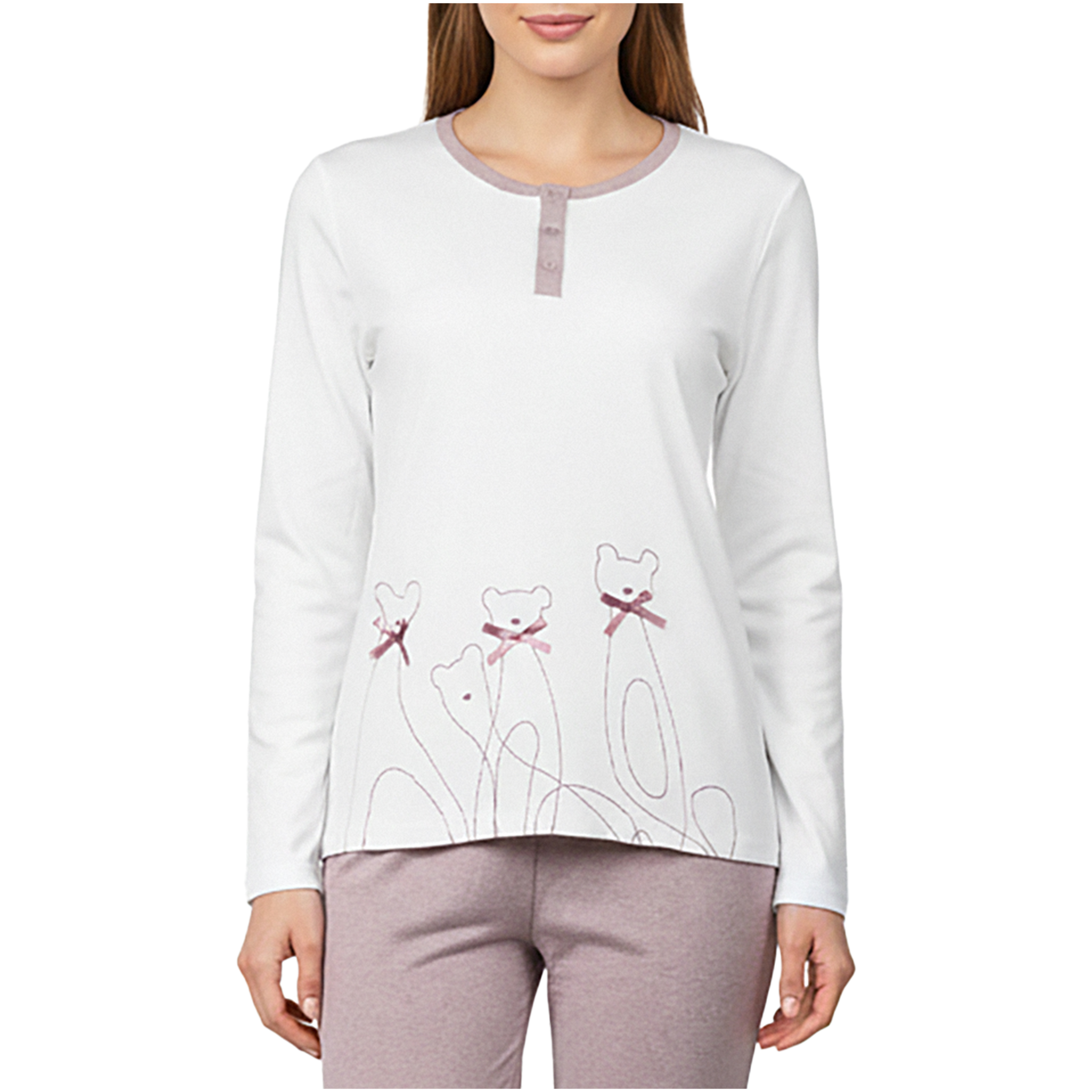 Bluzka z długim rękawem + wygodne spodnie - kompletny look, który sprawdzi się zarówno do snu, jak i leniuchowania w weekendowe poranki przy kawie i ulubionej książce.