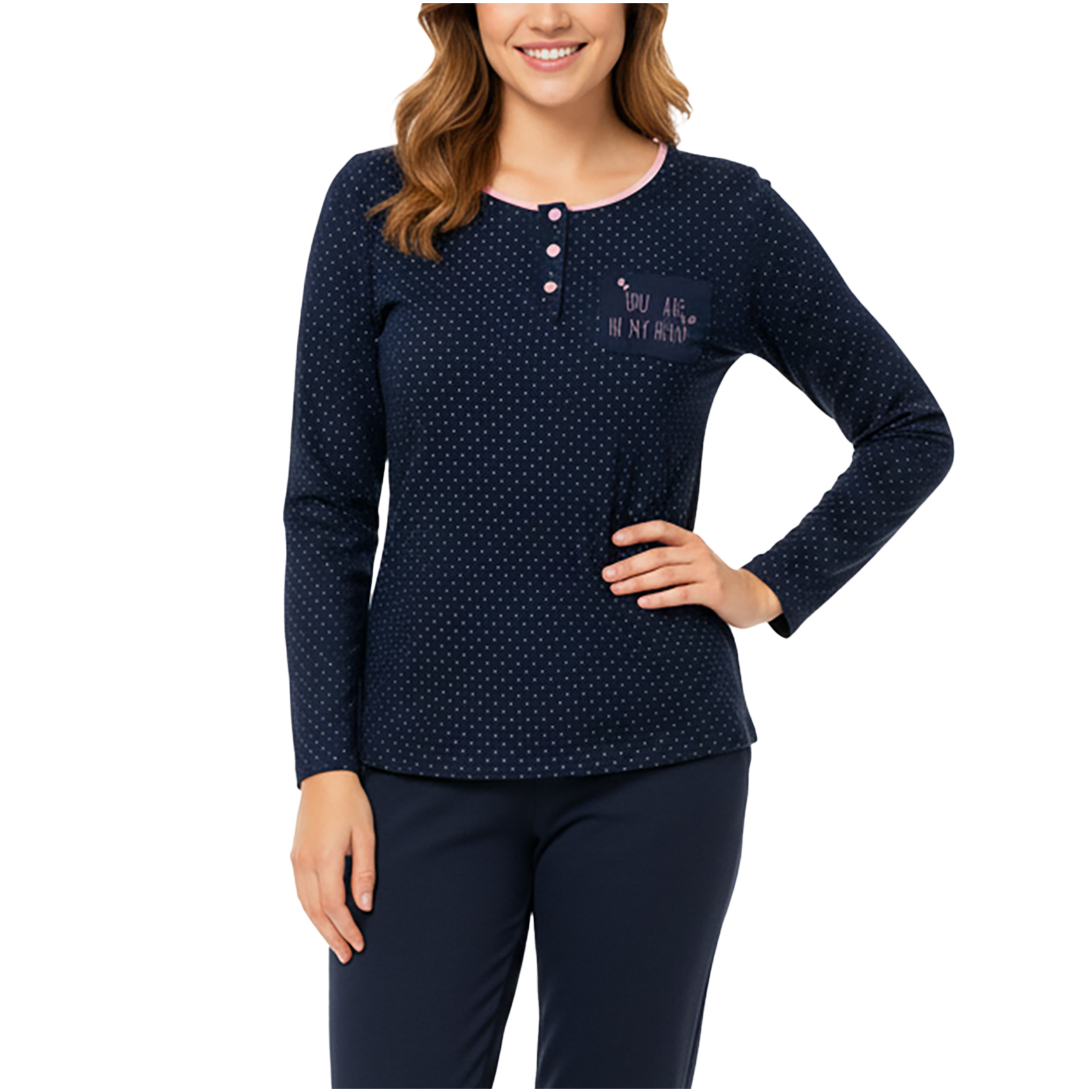 INFIORE Piżama Damska Długi Rękaw Guziki Kieszeń BLU