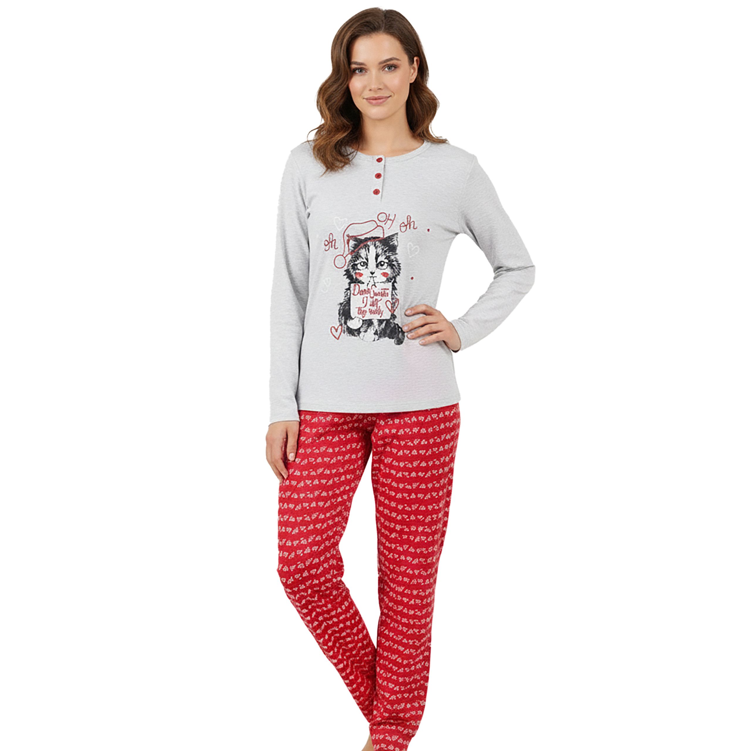 INFIORE Piżama Damska Długi Rękaw Guziki Kieszeń CAT