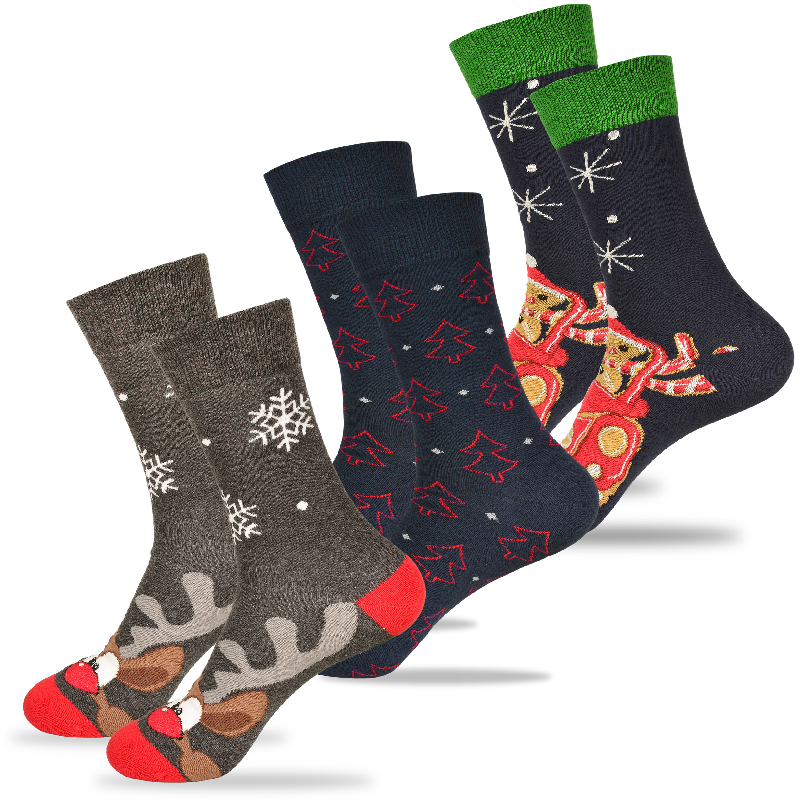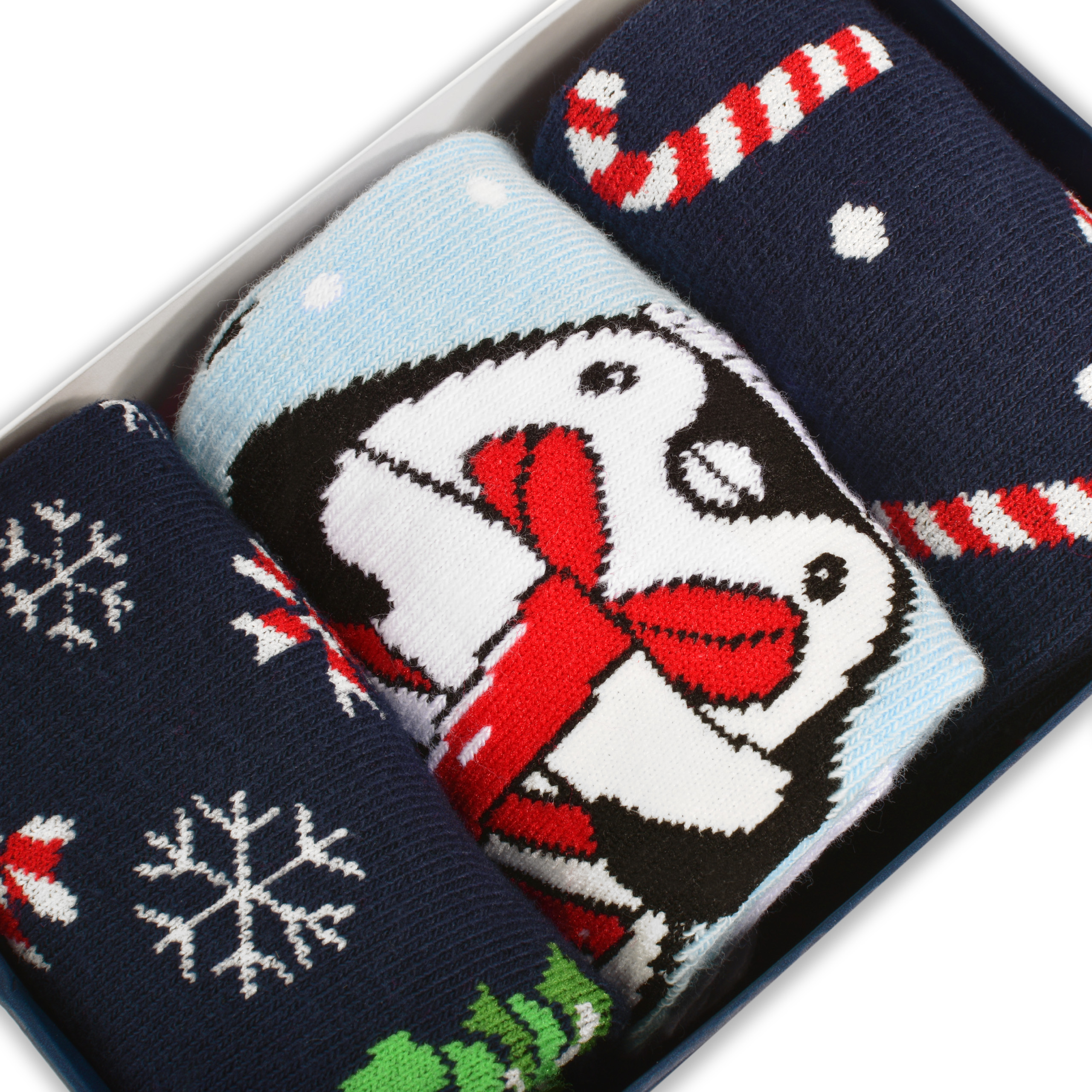 - Urocze, świąteczne wzory: 6 różnych par z motywami pingwinków, reniferów, choinek i zimowych akcentów – każdy dzień grudnia może być wyjątkowy!