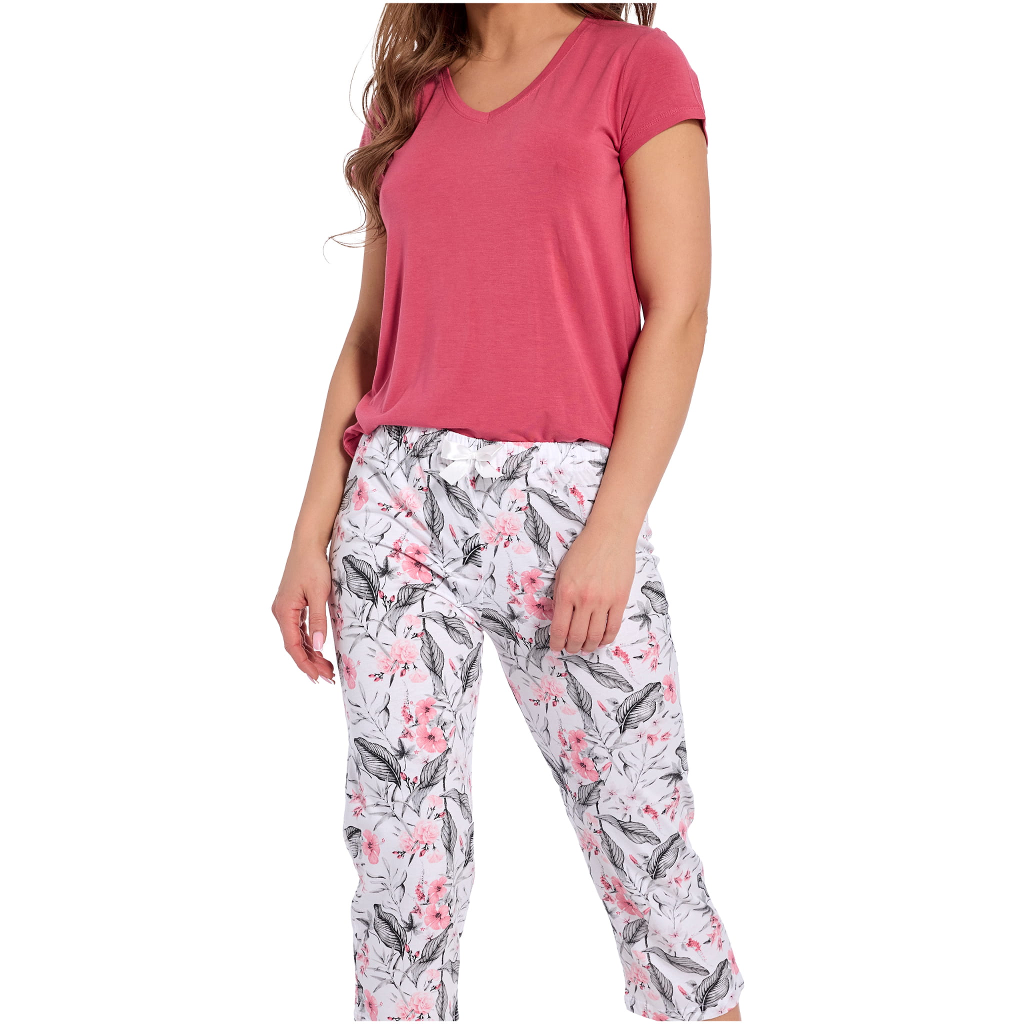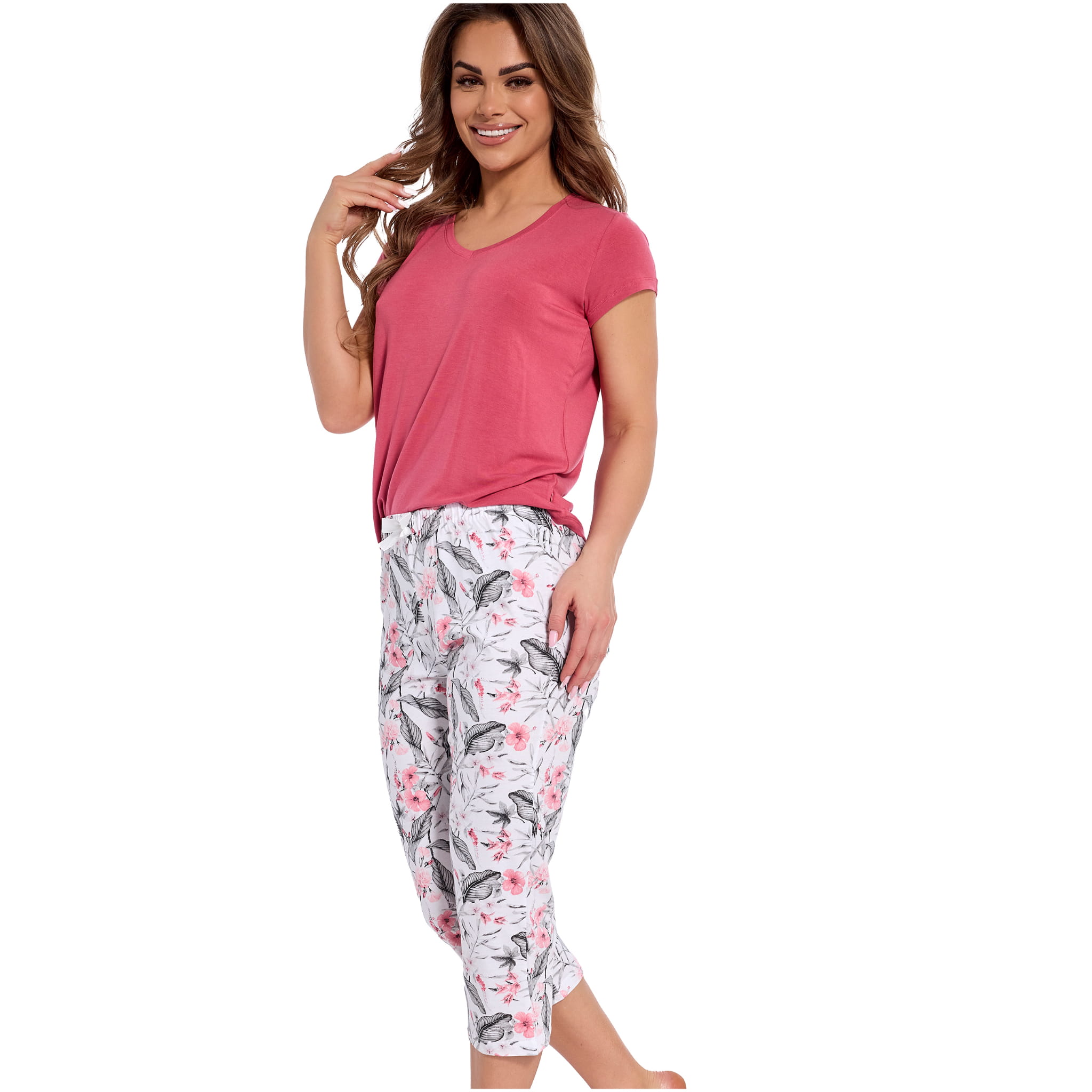 Cornette Piżama Damska Krótki Rękaw Spodnie 3/4 Kwiaty Bawełna