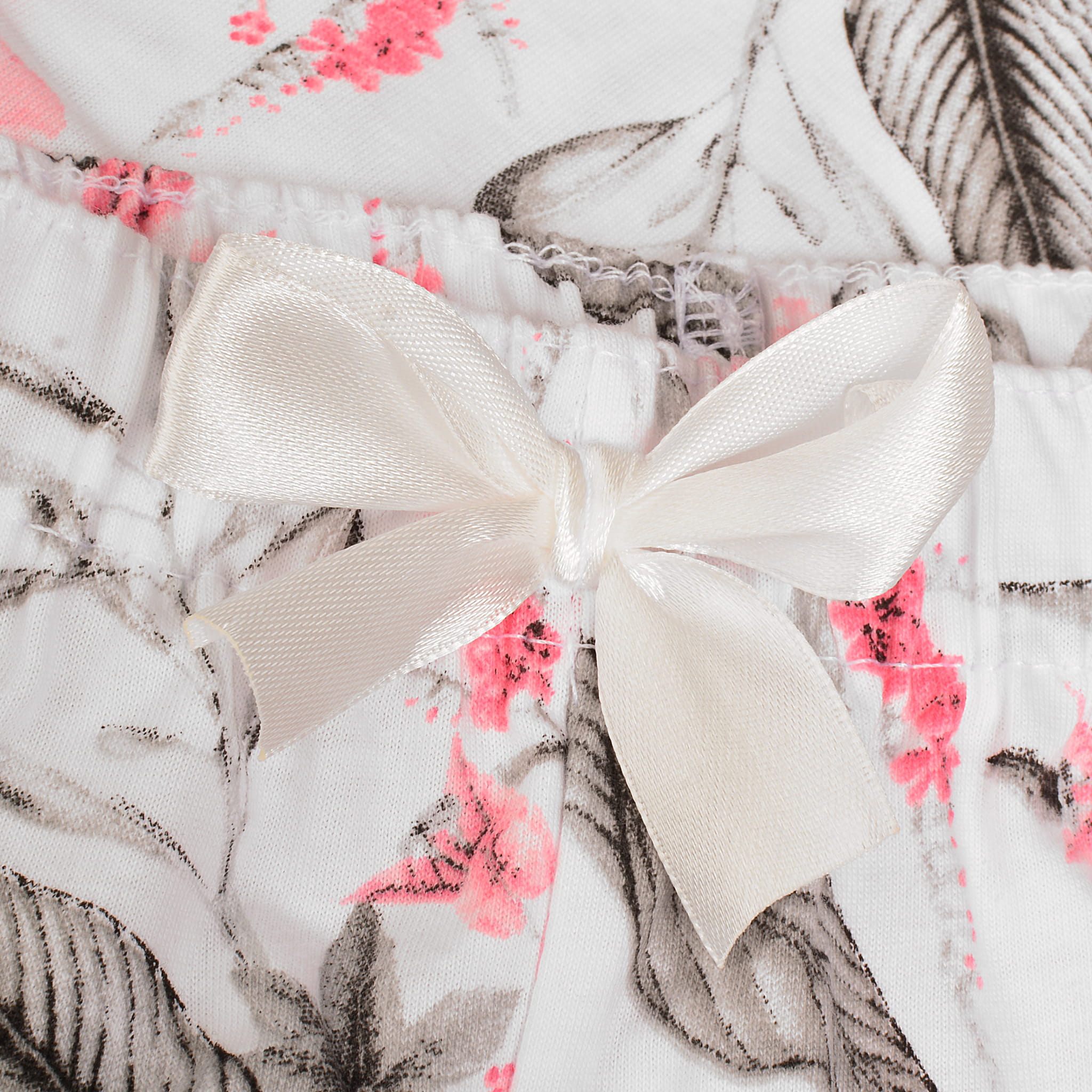 Spodnie 3/4 wykonane w 100% z bawełny ozdobione są romantycznym, kwiatowym nadrukiem. Elastyczny pas i urocza kokardka zapewniają wygodę oraz subtelny, dziewczęcy akcent.