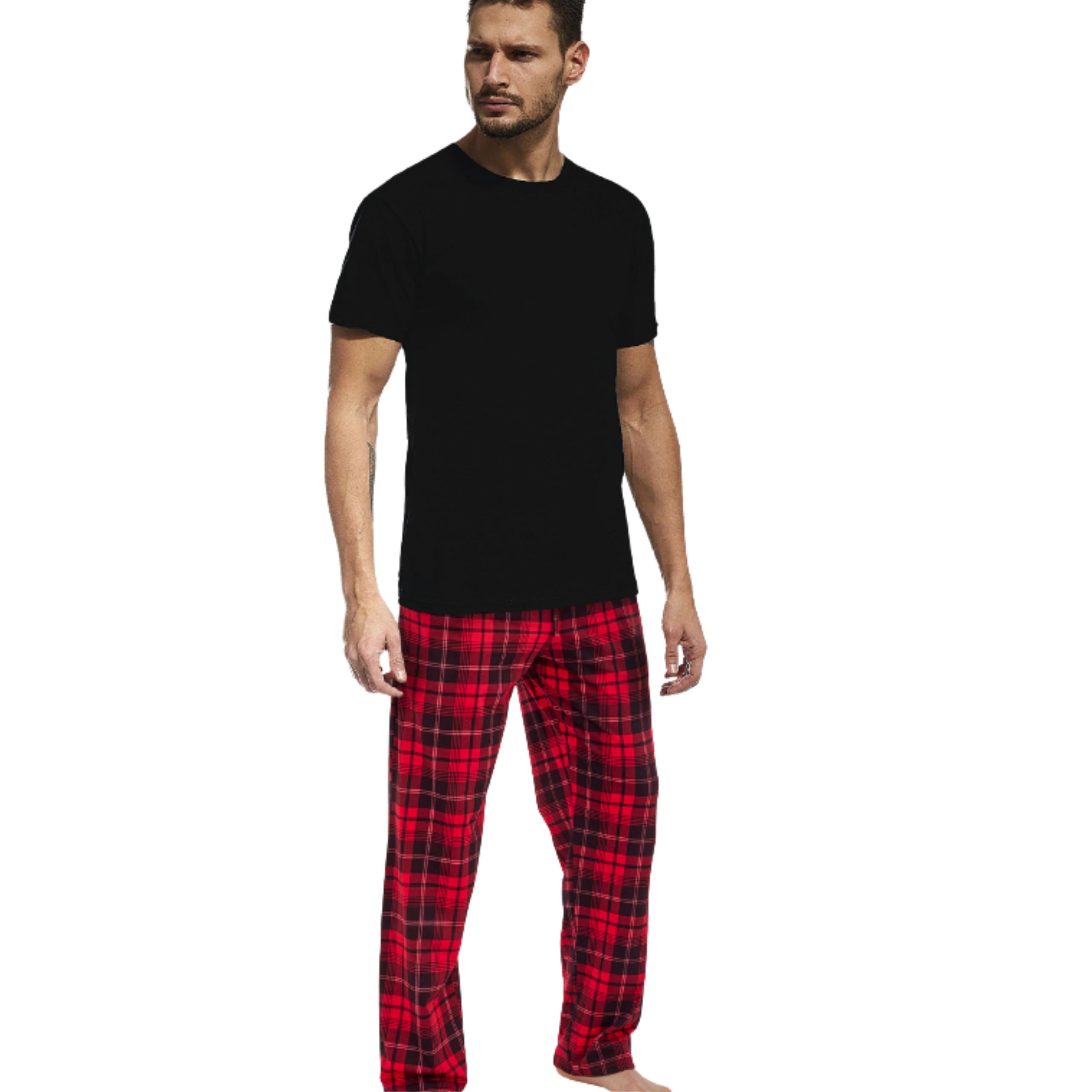 Cornette Świąteczny Komplet Piżama Męska Bawełna Czarny Czerwony