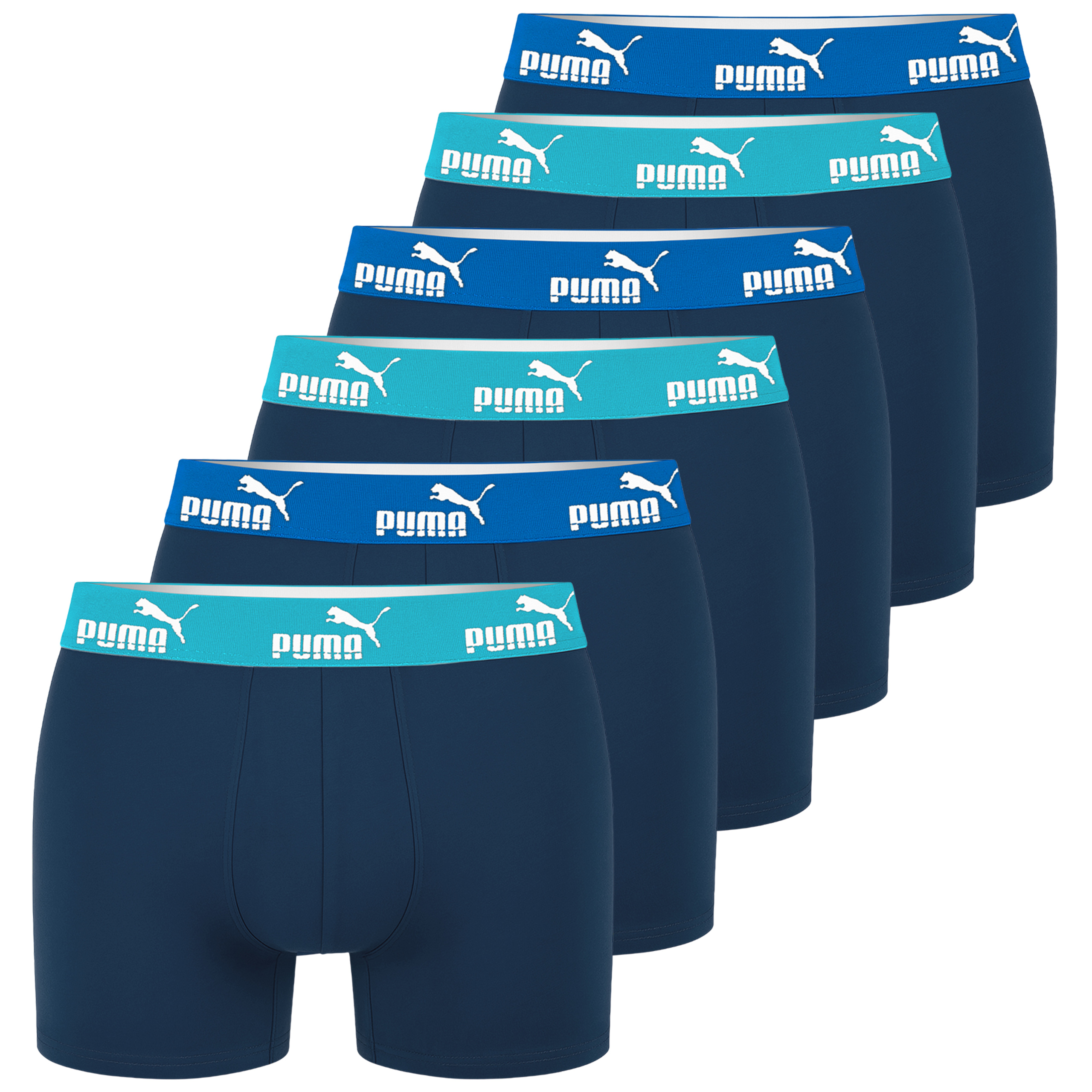 W zestawie znajduje się 6 par bokserek z elastycznymi gumami, ozdobionymi logo Puma.