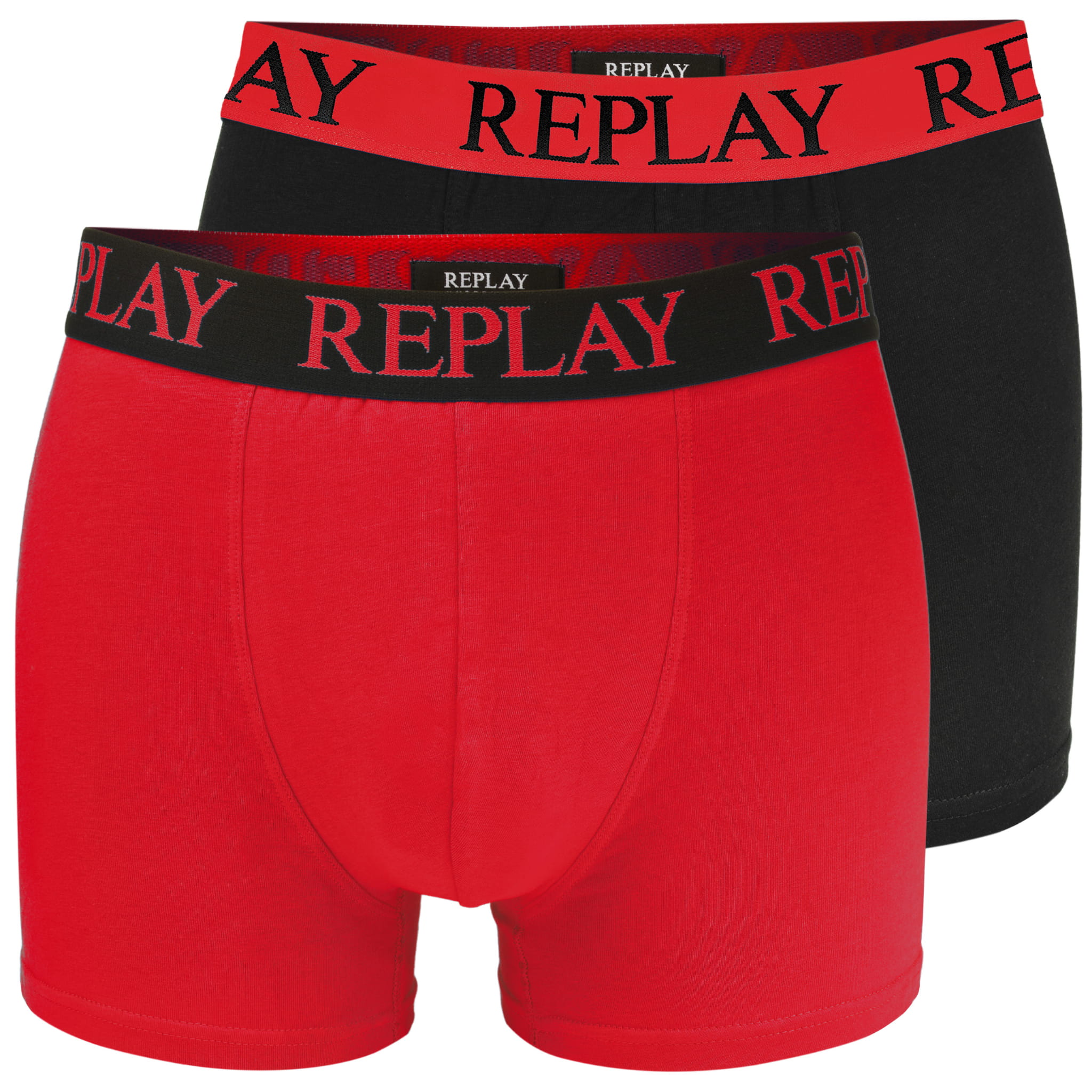 Replay Czarny Czerwony Bokserki Męskie Logo Zestaw 2 Sztuki