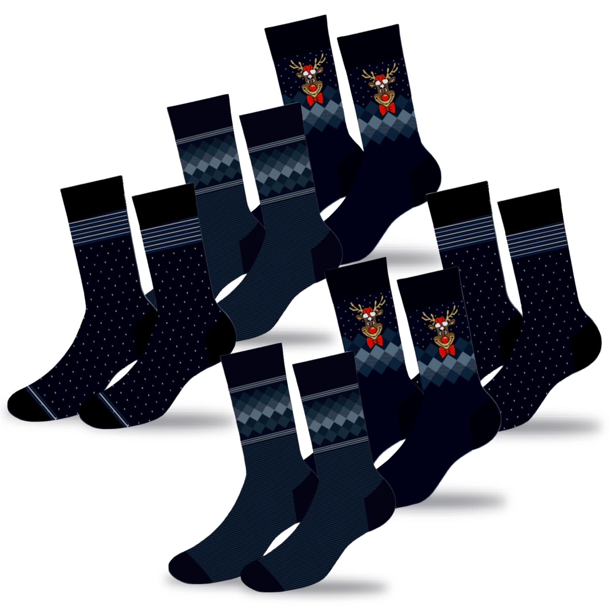 Wprowadź świąteczny nastrój do swojej garderoby z zestawem skarpetek ozdobionych wyjątkowymi bożonarodzeniowymi wzorami!