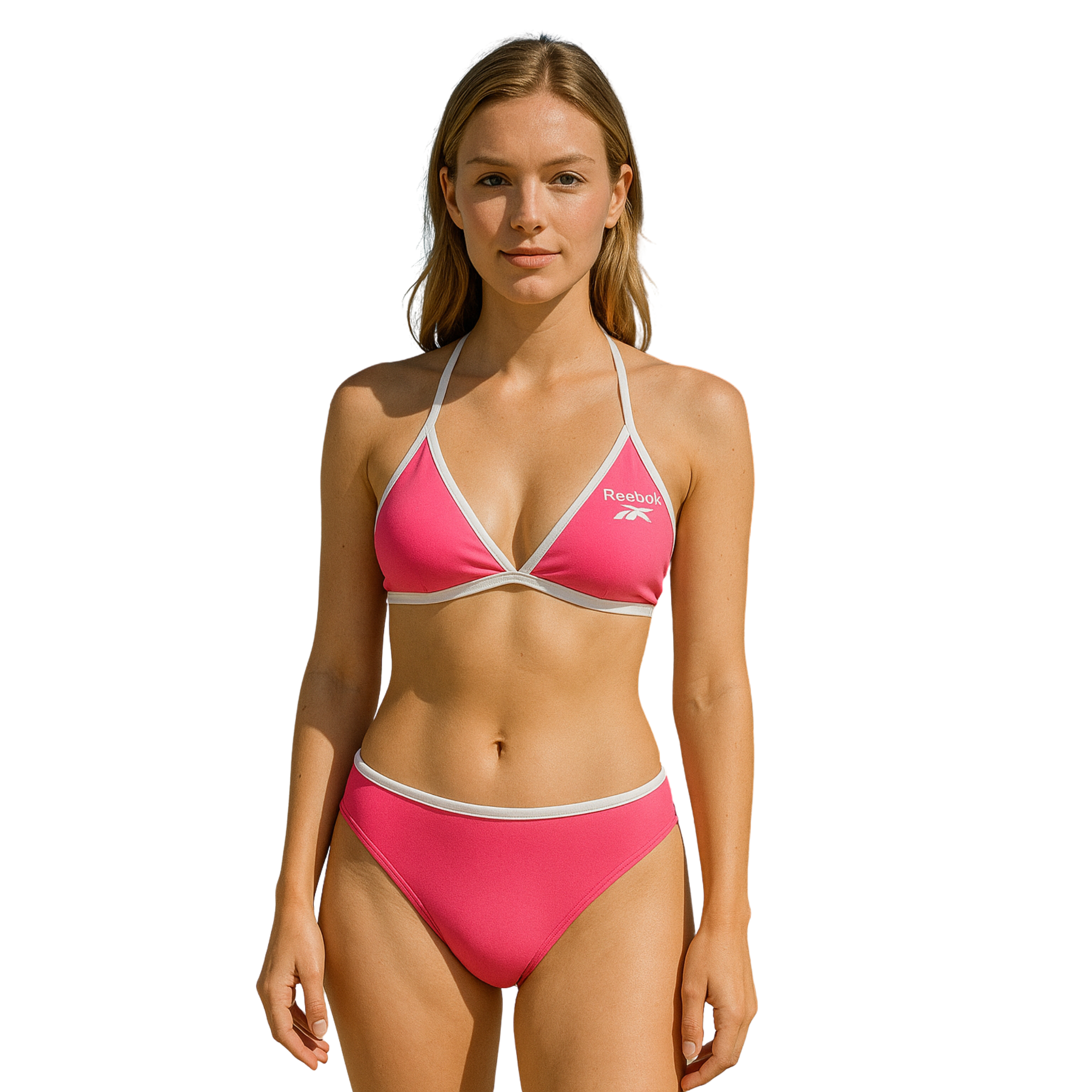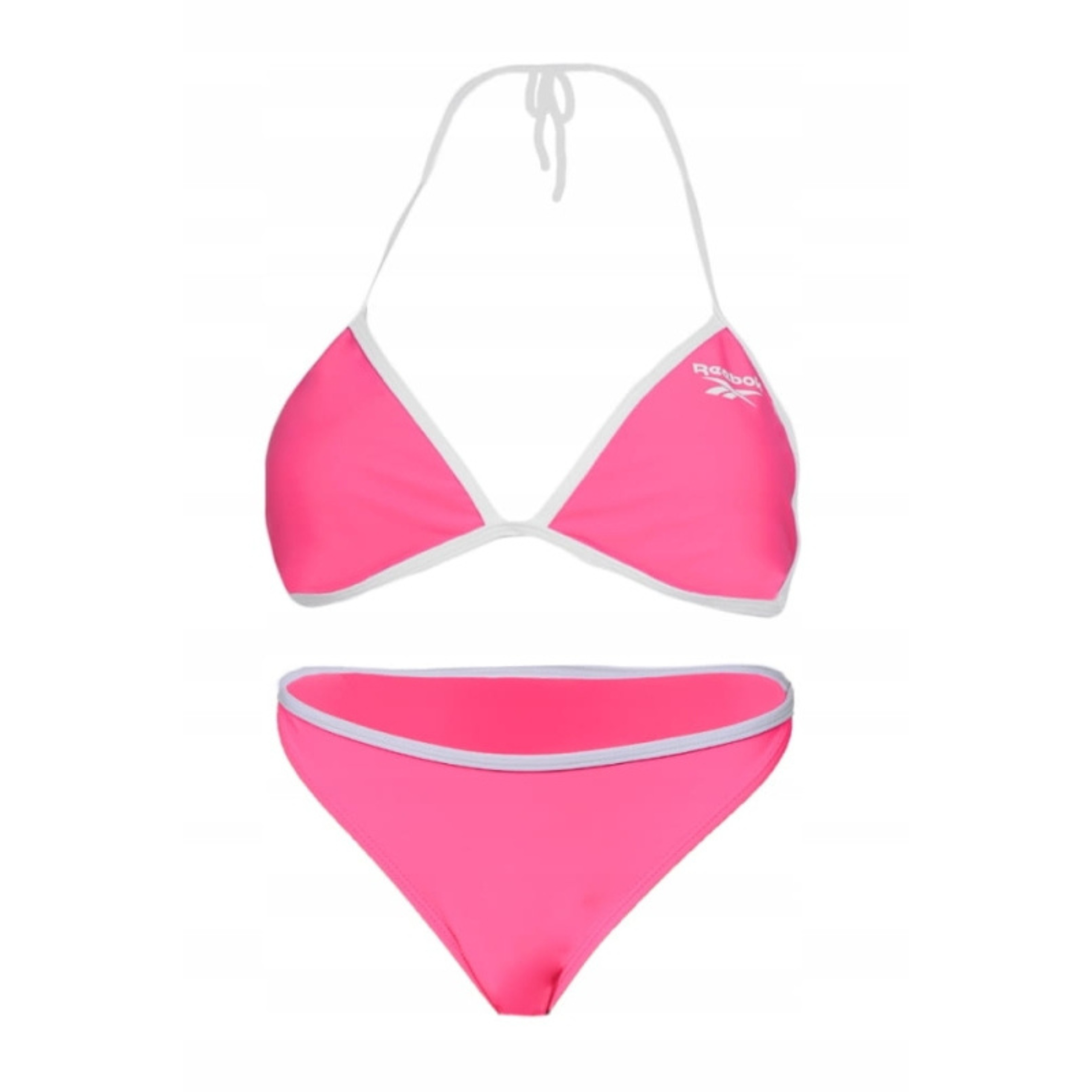 Top wiązany na szyi i plecach umożliwia indywidualne dopasowanie i stabilizację, a klasyczne bikini z wiązaniami po bokach dodaje lekkości i kobiecego uroku. Delikatne logo Reebok umieszczone na obu częściach stroju podkreśla sportowy styl i jakość wykonania.