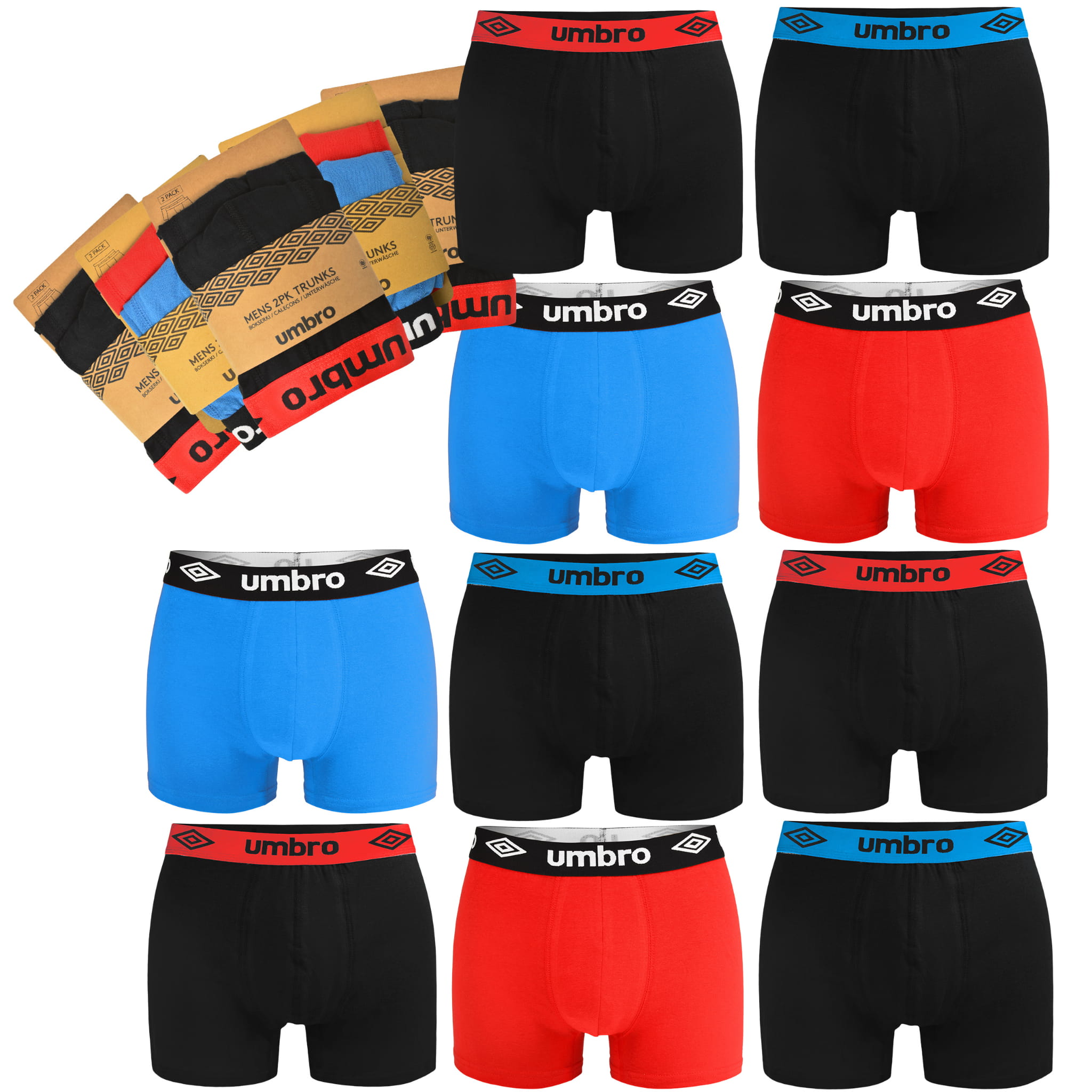 Umbro Bokserki Męskie Bawełniane Kolorowe Logo 10 sztuk 0197