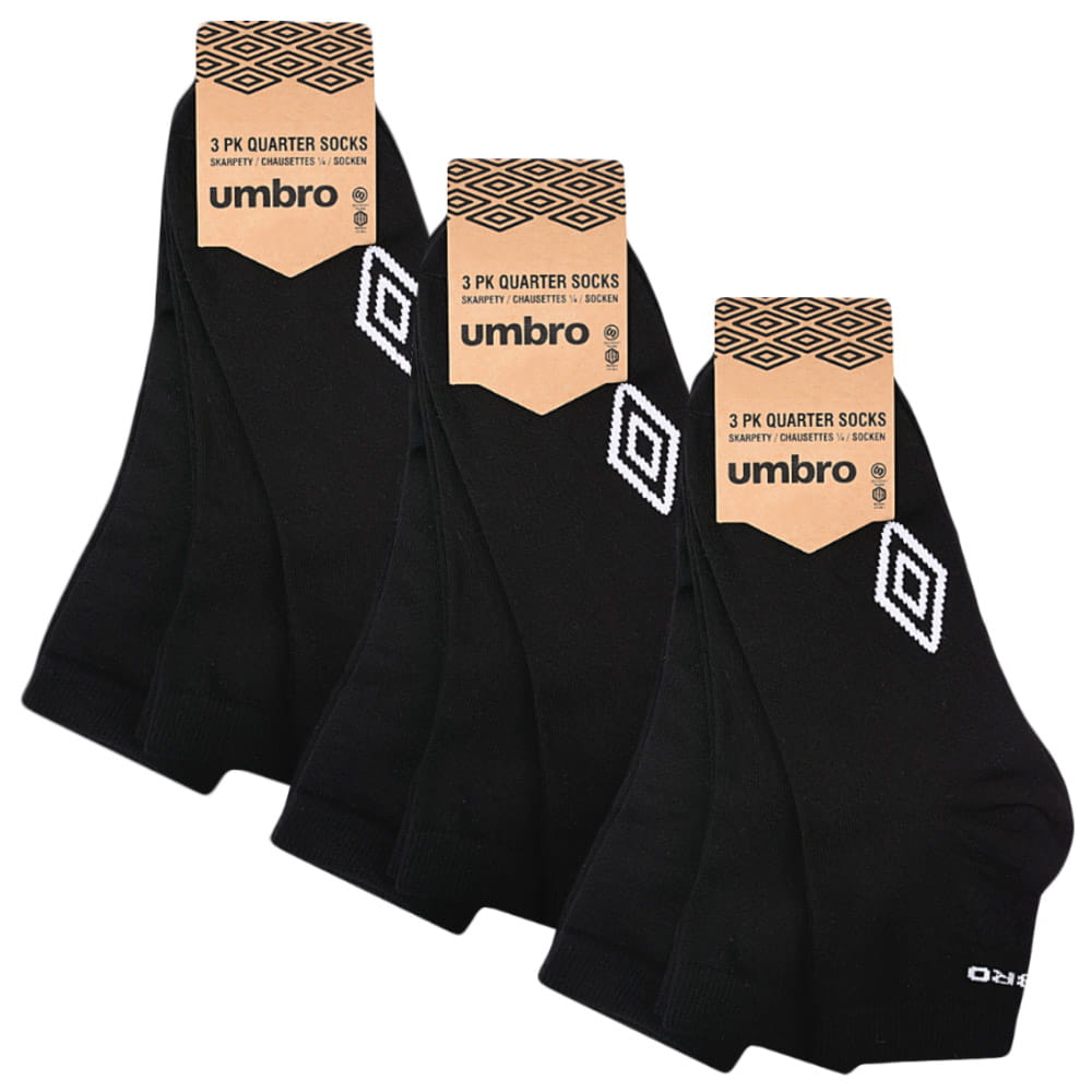 Ten praktyczny zestaw 9 par skarpet Umbro to niezawodny wybór dla mężczyzn, którzy cenią wygodę i funkcjonalność w każdej sytuacji – od treningu po dzień spędzony w pracy lub na mieście.